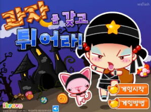 열심히 사탕을 모은 뒤 스페이스바를 다시 누르면 아래로 툭 떨어뜨리게 되는데, 이때 옹순이와의 호흡이 정말 중요합니다.