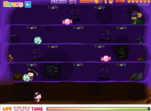 열심히 사탕을 모은 뒤 스페이스바를 다시 누르면 아래로 툭 떨어뜨리게 되는데, 이때 옹순이와의 호흡이 정말 중요합니다.
