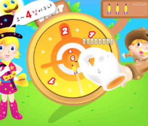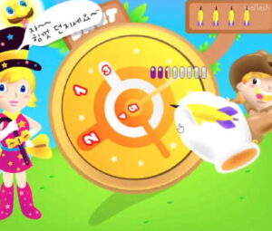 오늘 소개할 작품은 바로 다트 게임입니다. 빙글빙글 돌아가고 있는 회전판에 다트 핀을 던져 나오는 숫자만큼 기록을 남기는데, 운이 좋다면 대박 포인트를 얻을 수 있지만 생각만큼 쉽지 않습니다.