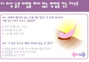 이 게임을 통해 많은 도움을 제공받을 수 있습니다. 집중하면서 답변에 응하면서 결과를 확인해 주세요.