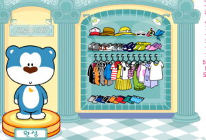 - 성별 구분: 옷들 중에는 남성 옷만 있는 것이 아니라 여자 옷도 있습니다. 만약 노란색 치마를 입혀보았더니 예상한 대로 블루베어가 실망한 얼굴 표정을 지으며 여자 옷은 싫어합니다. 그렇기 때문에 여러분은 남자 옷으로만 골라 입혀야 합니다.