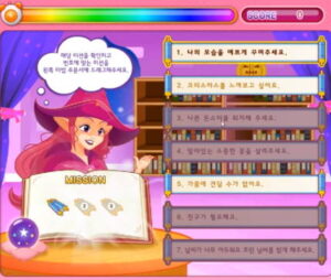 📝 처음 시작 전에 임무를 선택해야 합니다. 정해진 순서대로 주문서를 드래그하며 알맞은 위치에 고정하면 되는데, 두루마리를 하나씩 소멸시키면서 “나의 모습을 예쁘게 꾸며주시라는” 문구가 뜨면 마법 봉으로 밑그림을 따라 똑같이 그려만 주면 됩니다.