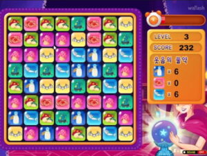 오래전에 큰 사랑을 듬뿍 받았던 상당히 재미있는 마법왕을 향하여라고 하는 추억의 쥬니버 플래시 게임입니다. 이번 작품은 똑같은 그림을 3개 이상 만남을 하여 맞추는 퍼즐 게임으로, 짧은 시간 동안 높은 재미를 느낄 수 있습니다.