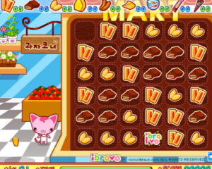 화면 상단에는 먹음직스러운 음식들로 구성되어 있는데, 포장해야 할 과자 개수를 확인하고 마우스로 해당 과자를 클릭하여 빈칸 안으로 이동시키면 됩니다. 똑같은 종류의 과자가 한 줄로 다 채워지면 빙고가 되는 방식으로, 포장된 과자 완제품이 나타나게 되는데 상단의 과자 개수를 모두 완료하게 되면 레벨 업그레이드를 하고 어려운 다음 스테이지로 이동할 수 있어요.
