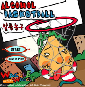어떻게 보면 상당히 병맛스러운 느낌을 주는 심심할 때 즐기기 좋은 알콜 농구라고 하는 와글와글 추억게임을 다 함께 즐겨보겠습니다. 주인공 캐릭터가 술에 가득 취한 상태로 혼자서 농구 게임을 즐기고 있습니다.