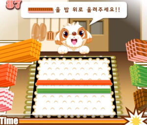 - 🍣재료 드래그를 빠르게 하세요: 검은색의 김을 도구 위에 올려놓는 것부터 시작해서 재료들을 집어넣는 모든 과정은 마우스 드래그 및 클릭으로 이루어집니다. 손쉽게 느껴지는 조작이지만, 빠른 시간 안에 정확하게 드래그하여 다음 단계로 넘어가는 것이 중요합니다.