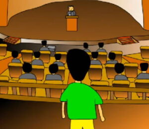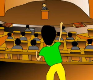 - 선생님 동태: 강당에는 많은 학생들이 수업을 듣고 있습니다. 귓가로 알아들을 수 없는 목소리로 앞에서 열심히 이야기하고 있는 선생님의 동태를 잘 파악해야 합니다.