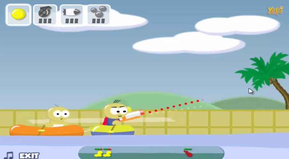 1. 조준 사격 연습: 마우스를 상하로 조준하여 각도맞추어 주시고 드래그통해 공격 거리계산하면 폭탄 탄환이 날아갑니다. 빠르게 조준 사격하여 정확하게 한방에 끝낼 있도록 연습해야 합니다.