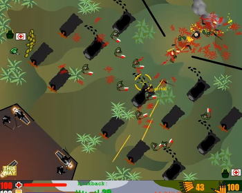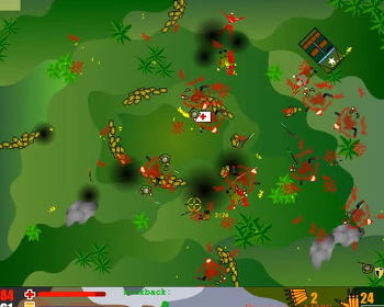 비처럼 가득 날아오고 있는 다수의 총알들을 모두 맞는다 해도 생명력이 줄지 않아 영향을 받지 않고 있어, 주인공과 함께 전투를 펼치는 군인들을 엄호해줄 수가 있어요. 이 버전은 사실상 무적 상태로 플레이할 수 있습니다.