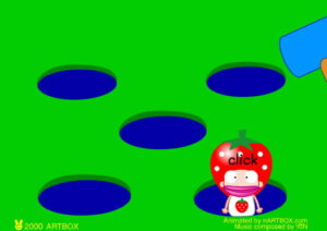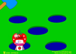스트레스를 많이 받을 때 즐기시기 좋은 작품으로, 캐릭터 딸기를 망치를 이용하여 타격하는 게임입니다. 진행을 할 때에는 다섯 개의 구멍 속에서 마치 두더지처럼 불쑥 튀어나오는데, 이때 사라지기 전에 마우스 클릭을 통해 열심히 때려 주면 됩니다.