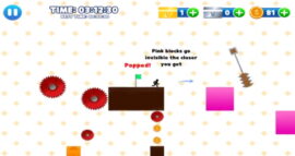 블록을 건널 때는 아래쪽에 빠져서 위험한 요소가 없는지 순간순간 확인하여 죽지 않도록 해야 합니다. 날카로운 가시나 톱니바퀴에 접촉되지 않도록 캐릭터를 잘 조작해 주세요.