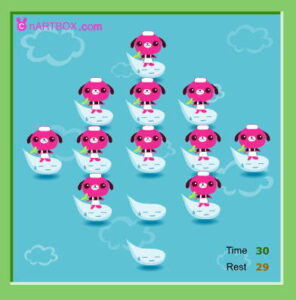 💥 말을 앞으로 뛰어넘으면 뒤에 있던 말은 화면에서 사라집니다. 이 규칙을 활용하여, 제한 시간 30초 동안 단 한 마리만 남기고 모든 말을 없애면 임무를 완료하는 방식으로 진행됩니다.