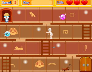- 각 장소에 있는 보물들을 모두 찾게 되면 다음 장소로 넘어갈 수 있는 문이 열리게 되는데, 이때 미라와 박쥐들을 피해야 합니다.