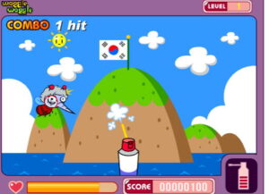 여러분은 깃발에 달려드는 모기들을 에프킬러를 이용하여 퇴치해야 합니다. 이 에프킬러의 경우에는 총 여섯 번 사용하고 나면 재충전을 해야 합니다.