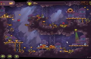 화면 중앙의 플레이 버튼을 누르면, 두 명이 동시에 게임을 즐길 수 있습니다. 외계 생명체를 한 곳에서 다른 곳으로 옮기는 과정이 자칫 지루하게 느껴질 수 있다고 생각할 수 있습니다. 하지만 떨어지는 바위, 미사일 함정, 폭발하는 통으로 가득 찬 좁은 동굴 속에서 로켓 추진 우주선을 조종하게 되면 이야기는 완전히 달라집니다!
