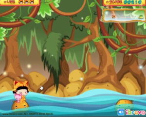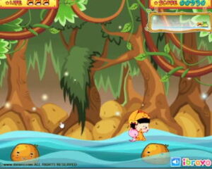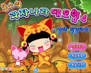 타이틀 제목은 옹스의 과자나라 대모험 4 감자 징검다리 게임입니다. 간단하게 소개하자면 출렁거리는 물 위에서 무사히 벗어날 수 있도록 마우스 컨트롤을 제대로 보여주어야 합니다.