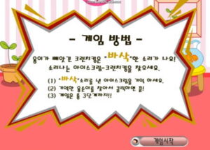 여러분은 초콜릿(크런치킹)을 가지고 있는 캐릭터를 찾아야 합니다. 처음 단계는 많이 쉬운 난이도로 누구든지 쉽게 찾을 수 있지만, 2단계 그리고 마지막 3단계에서는 상당히 빠른 스피드를 보여주고 있어 제대로 골라내기 어렵습니다.
