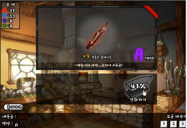 - 무기 강화 시도: 마우스 클릭 (강화 버튼)