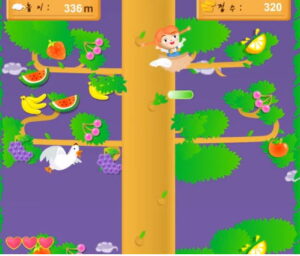 다른 장애물도 똑같이 적용됩니다. 정확하게 피하고 올라가면서 등장하는 다양한 과일들을 열심히 따주면 됩니다.