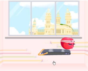 1️⃣ 첫 번째 임무, 열심히 운동하기입니다. 처음에는 주인공 체리가 하늘에서 떨어져 내리는데, 이때 러닝 머신을 마우스로 조절하여 체리가 밖으로 벗어나지 않게 좌우 방향으로 빨리 컨트롤해야 합니다. 시간이 지날수록 움직임이 빨라지고 있어 높은 집중력이 필요합니다.