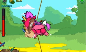 💡 단순히 마우스 드래그를 빨리 해주면 말 인형에게 강한 공격을 무수히 가하면서 많은 사탕을 내보냅니다. 많이 떨어지는 자리에 바구니를 설치해야 합니다. 새 게임을 누르면 간단한 설명과 함께 임무가 진행됩니다. 여러분은 우선 사탕을 담을 바구니를 위치에 배치해 놓으시고, 나무 막대기로 사정없이 말을 때려 주시면 됩니다. 불쌍하게 매달아 놓은 유니콘을 지금부터 마우스를 드래그하여 인정사정 봐주지 마시고 쉴 새 없이 마구 때려 주세요.