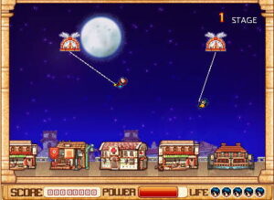 먼저 어떤 작품인지 설명을 해드리겠는데, 화면에 보게 되면 마법 줄타기로 공중에 길게 매달려 있는 요술 밧줄을 이용하여 우측에서 좌측 방향으로 이동하는 임무를 수행하여 게임을 플레이합니다.