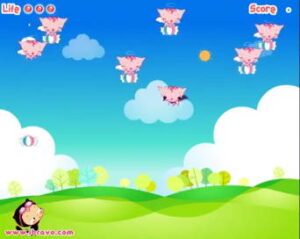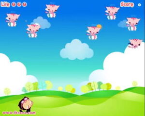 - 🎈 게임 배경: 마우스를 사용해서 재미있게 즐길 수 있는 컨트롤 게임입니다. 공중에서는 천사 날개를 단 옹순이가 맛있는 사탕을 들고 있습니다.